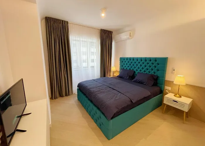 広々としたベッドルーム1室のLuxury Apartment Wellness ブカレストはVoluntariに位置し、グローバス・サーカスから3.8kmの距離です。スチームルーム、スチームルーム とサウナを提供しています。 70m²のアパートはアンドロナケから自動車で約10分に位置し、庭園の景色を一望できます。